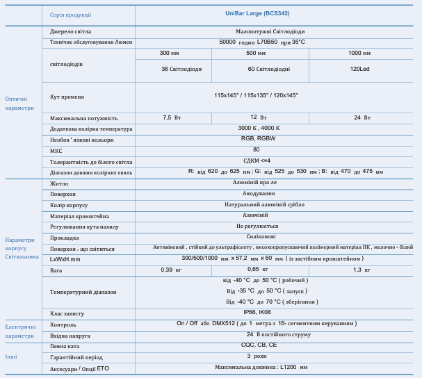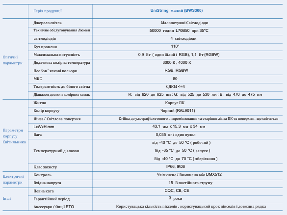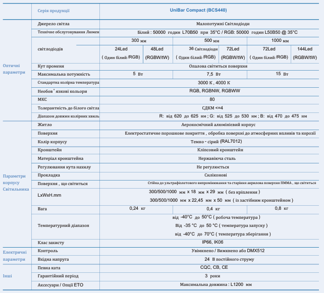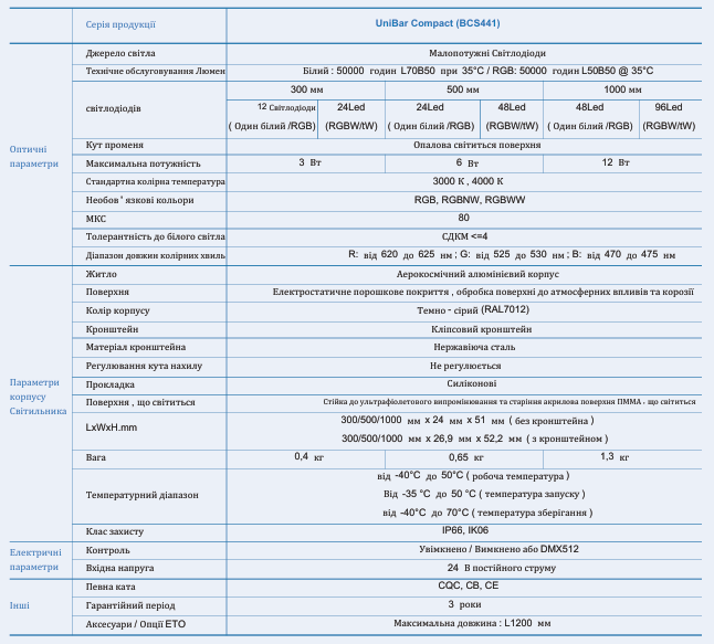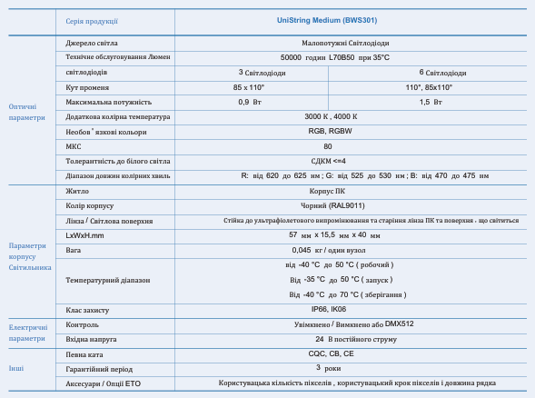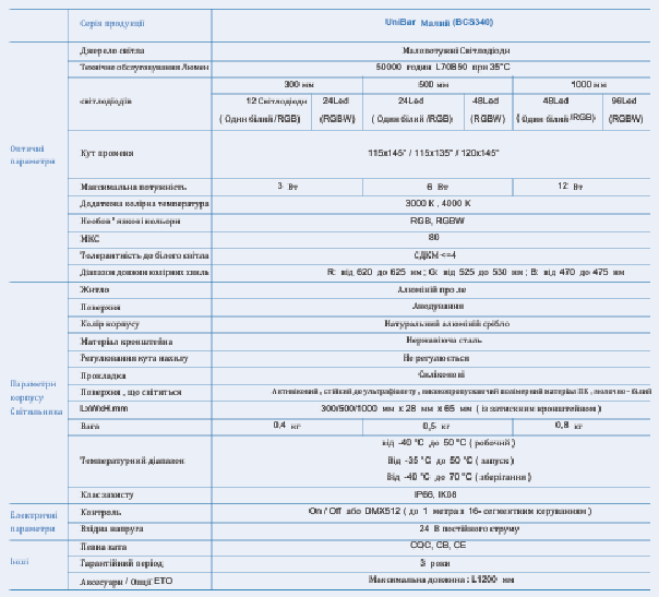 - Освітлювальні прилади UniStrip та UniEdge для зовнішнього освітлення