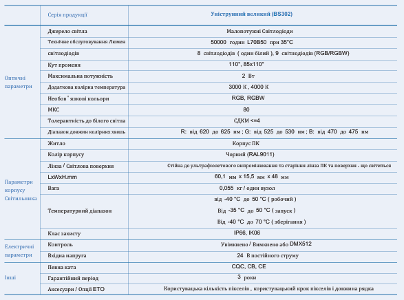 ·Стандартна комплектація: колірна температура RGBW, RGB,