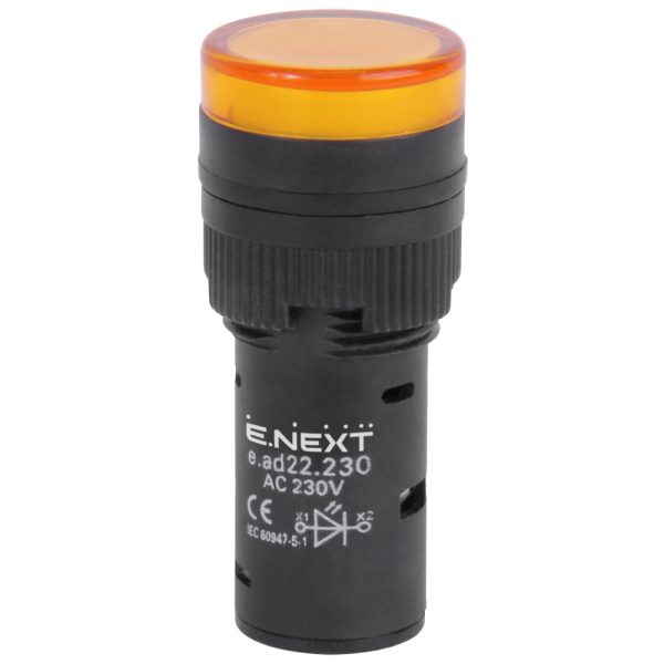 Арматура світлосигнальна e.ad22.230.yellow Ø22мм 230В АС жовта призначена для індикації стану електричних кіл змінного або постійного струму.