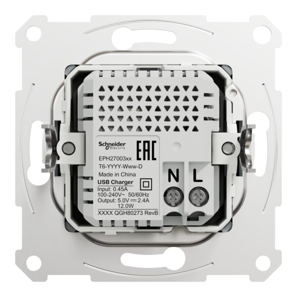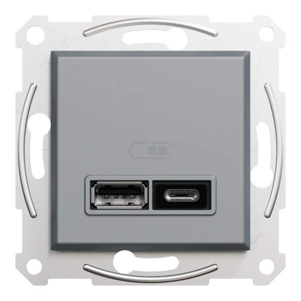 Розетка 2-а USB тип А+С 2,4А внутрішня. “ASFORA” сталь