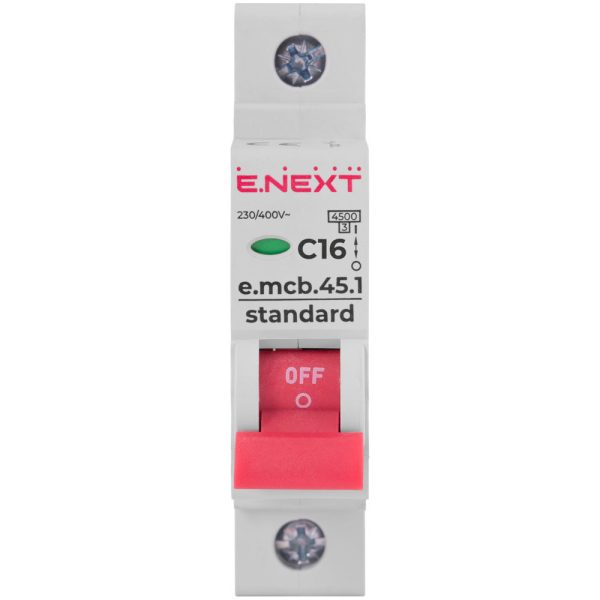 Модульний автоматичний вимикач e.mcb.stand.45.1.C16, 1р, 16А, C, 4,5 кА призначені для захисту електричних мереж та обладнання низької напруги від струмів перевантаження та короткого замикання, а також нечастих оперативних комутації електричних мереж.