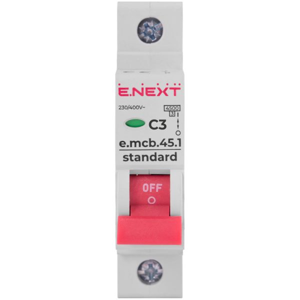 Модульний автоматичний вимикач e.mcb.stand.45.1.C3, 1р, 3А, C, 4,5 кА призначені для захисту електричних мереж та обладнання низької напруги від струмів перевантаження та короткого замикання, а також нечастих оперативних комутації електричних мереж.