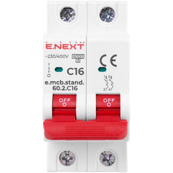 Модульний автоматичний вимикач e.mcb.stand.60.2.C16, 2р, 16А, C, 6 кА призначені для захисту електричних мереж та обладнання низької напруги від струмів перевантаження та короткого замикання, а також нечастих оперативних комутації електричних мереж.