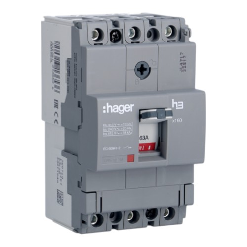 Автоматичний вимикач 3-п. 63A (18kA) Тфікс./Мфікс. “x160” Hager (B)