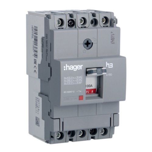 Автоматичний вимикач силовий 3-п. 100A 18kA Тфікс./Мфікс. x160 (B) “ХАГЕР”