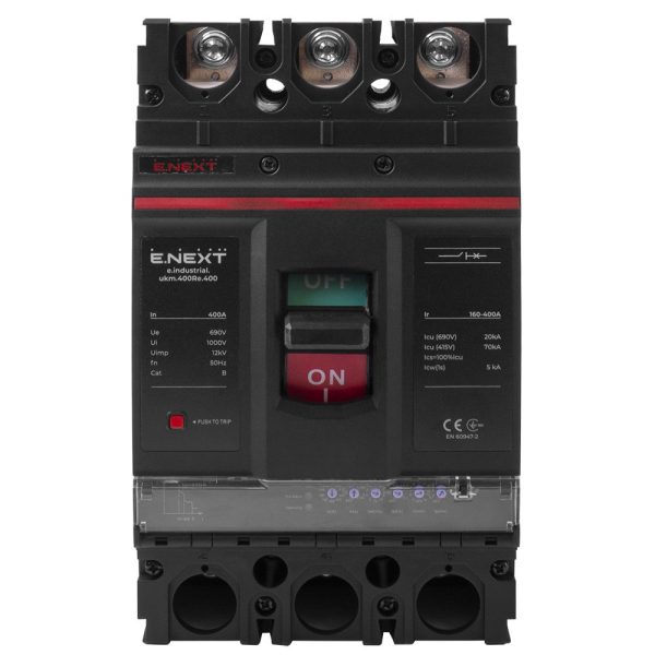 Силовий автоматичний вимикач e.industrial.ukm.400Rе.400 з електронним розчіплювачем, 3р, 400А для захисту електричних кіл від довгострокових перевантажень та струмів коротких замикань, а також для оперативного включення та відключення ділянок електричних мереж із частотою 50 Гц.