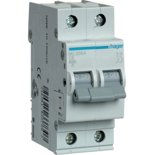 Авт. вим. 2-п. C 6A (6kA) 2M Hager (B) (Не постачається) (ЦІНА НА ЗАЛИШОК)