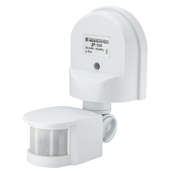 Датчик руху 180° 1200W настінно-стельовий (L12м, h2,5м) IP44 ДР-10А білий “АСКО”