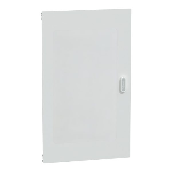 Прозорі двері для щитів PrismaSeT S. Призначені для використання в щитах які містять 5 рядів по 24 модулі ( 18 мм ). Ступінь захисту IP41. Двері виготовлені зі скла. Двері можуть бути встановлені в навісні щити. Необхідно визначити ID-номер ключа від замка. Загальні розміри: (Ш) 568 мм x (В) 946 мм x (Г) 48,4 мм. Вага 8 кг. Ступінь ударозахисту IK08. Робоча температура від -25°C до 60°C.