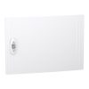 Суцільні двері для щитів PrismaSeT XS. Призначені для використання в щитах які містять 1 ряд 18 модулів ( 18 мм ). Ступінь захисту IP40. Колір білий (RAL 9003). Двері призначені для використання у житлових та промислових секторах. Двері можуть бути встановлені в навісний або врізний щит. Двері можна встановити та відкривати з правого або лівого боку щита. Загальні розміри: (Ш) 426 мм x (В) 300 мм x (Г) 20 мм. Двері виготовлені з технопластику. Стійкість пластику до полумя та надмірної температури 650°C. Ступінь ударозахисту IK09. Робоча температура від -25°C до 60°C.