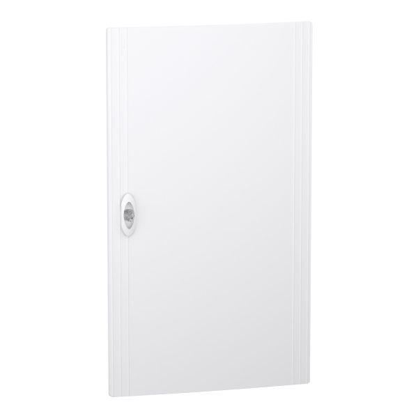 Суцільні двері для щитів PrismaSeT XS. Призначені для використання в щитах які містять 4 ряди по 18 модулів ( 18 мм ). Ступінь захисту IP40. Колір білий (RAL 9003). Двері призначені для використання у житлових та промислових секторах. Двері можуть бути встановлені в навісний або врізний щит. Двері можна встановити та відкривати з правого або лівого боку щита. Загальні розміри: (Ш) 426 мм x (В) 750 мм x (Г) 20 мм. Двері виготовлені з технопластику. Стійкість пластику до полумя та надмірної температури 650°C. Ступінь ударозахисту IK09. Робоча температура від -25°C до 60°C.