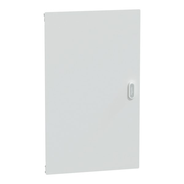 Суцільні двері для щитів PrismaSeT S. Призначені для використання в щитах які містять 5 рядів по 24 модулі ( 18 мм ). Ступінь захисту IP41. Двері виготовлені зі сталі. Колір білий (RAL 9003). Двері можуть бути встановлені в навісні щити. Необхідно визначити ID-номер ключа від замка. Загальні розміри: (Ш) 568 мм x (В) 946 мм x (Г) 48,4 мм. Вага 7,300 кг. Ступінь ударозахисту IK08. Робоча температура від -25°C до 60°C.