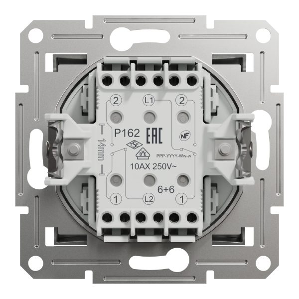 Вимикач 2-клавішний. внутрішній. прохідний “ASFORA” алюміній (C1)