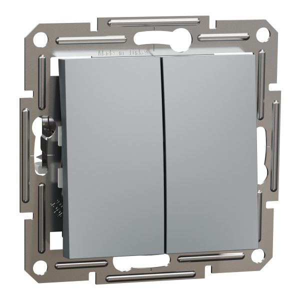 Вимикач 2-клавішний. внутрішній. прохідний “ASFORA” сталь (C2)
