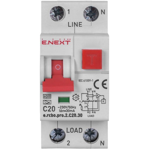 Вимикач диференційного струму з захистом від надструмів e.rcbo.pro.2.C20.30, 1P+N, 20А, С, тип А, 30мА Пристрої захисного відключення із захистом від надструмів (дифавтомат) призначені для відключення ділянки мережі при досягненні струму витоку на землю заданої величини, а також від перевантаження та короткого замикання. Дифавтомати застосовуються для захисту людей від ураження електричним струмом при контакті з струмопровідними частинами, а також для захисту обладнання від пожеж внаслідок порушення ізоляції проводки, від перевантаження та КЗ.