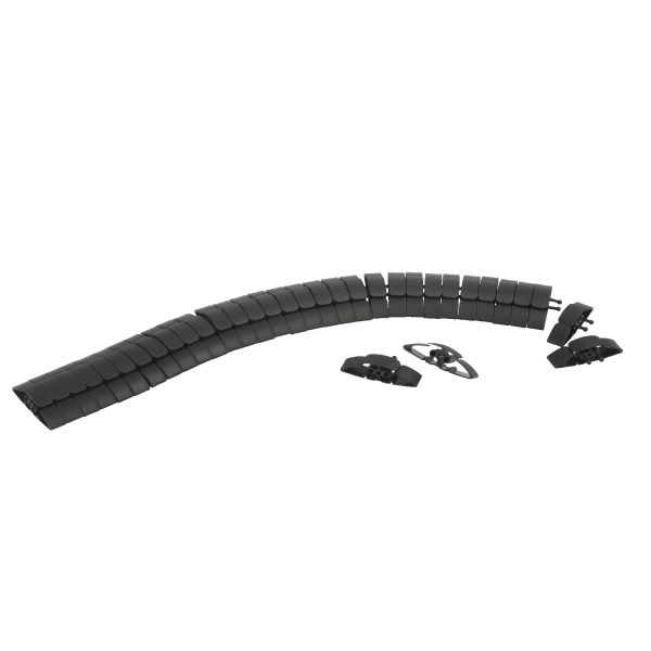 Гнучкий підлоговий кабельний фідер, рішення для організації кабелів та захисту підлогових кабелів, може бути підведений до столу (аксесуар). Вмісткість кабелю 4 x 8 мм. Кабелі можна вводити/протягувати вздовж підлогового фідера. Гнучка телескопічна конструкція довжиною від 700 мм до 1000 мм.