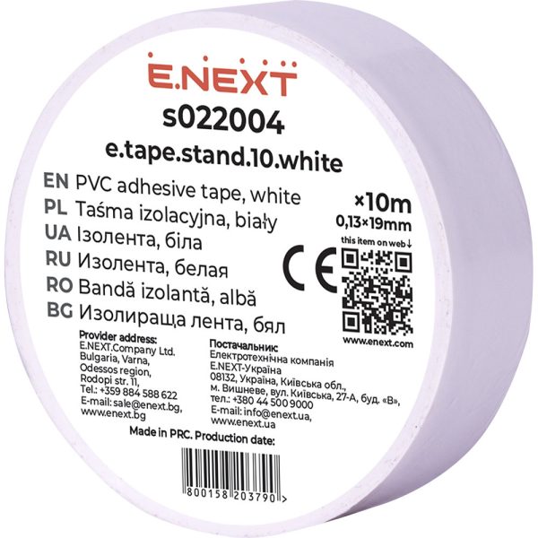 Ізострічка ПВХ 0,13х19х10м (біла) “Е-НЕКСТ”