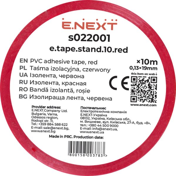 Ізострічка ПВХ 0,13х19х10м (червона) “Е-НЕКСТ”