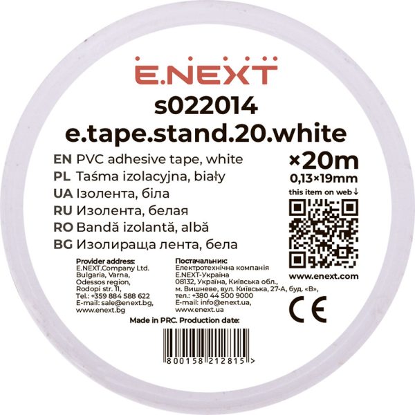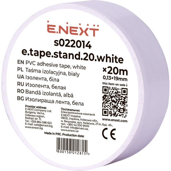 Ізострічка ПВХ 0,13х19х20м (біла) “Е-НЕКСТ”
