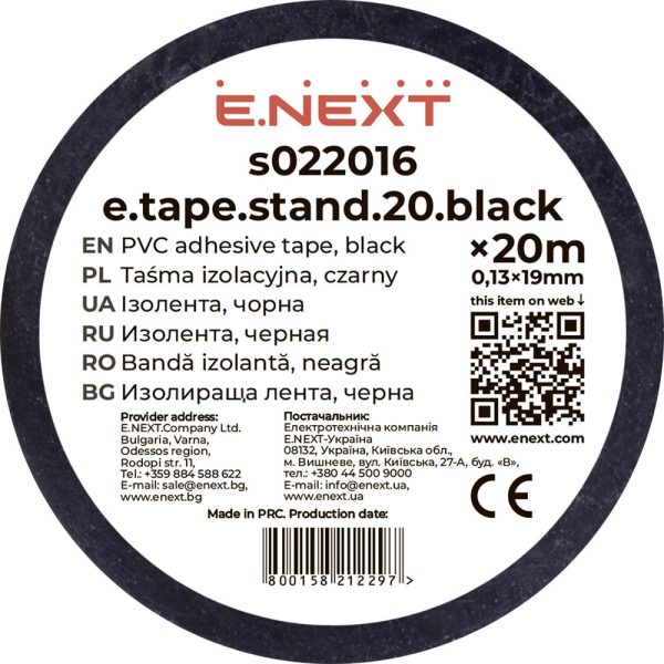 Ізострічка ПВХ 0,13х19х20м (чорна) “Е-НЕКСТ”
