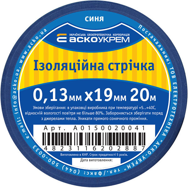 Ізострічка ПВХ 0,13х19х20м (синя) АСКО