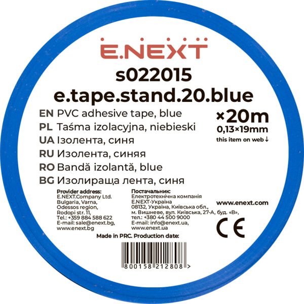 Ізострічка ПВХ 0,13х19х20м (синя) “Е-НЕКСТ”