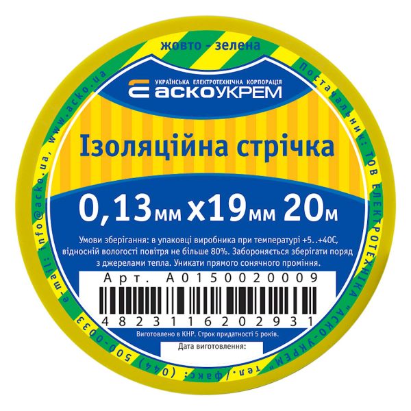Ізострічка ПВХ 0,13х19х20м (жовто-зелена) АСКО