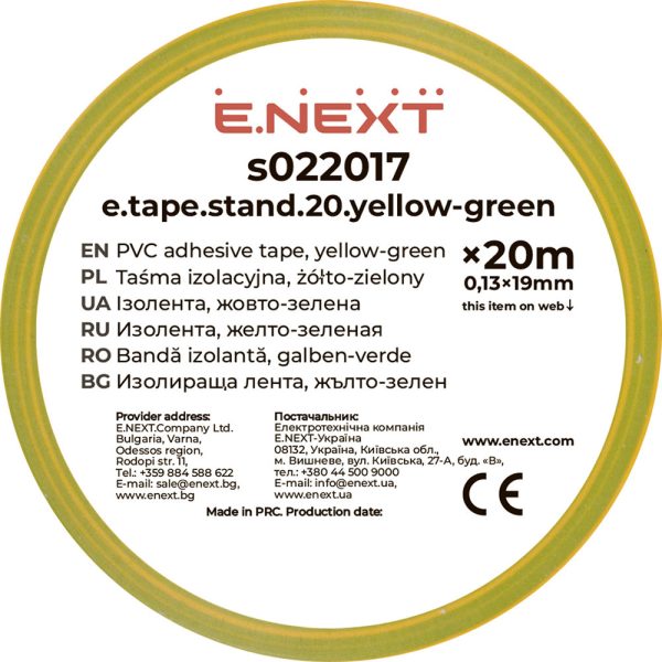 Ізострічка ПВХ 0,13х19х20м (жовто-зелена) “Е-НЕКСТ”
