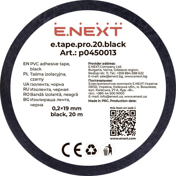 Ізострічка ПВХ 0,15х19х20м (чорна) самозатухаюча “Е-НЕКСТ”