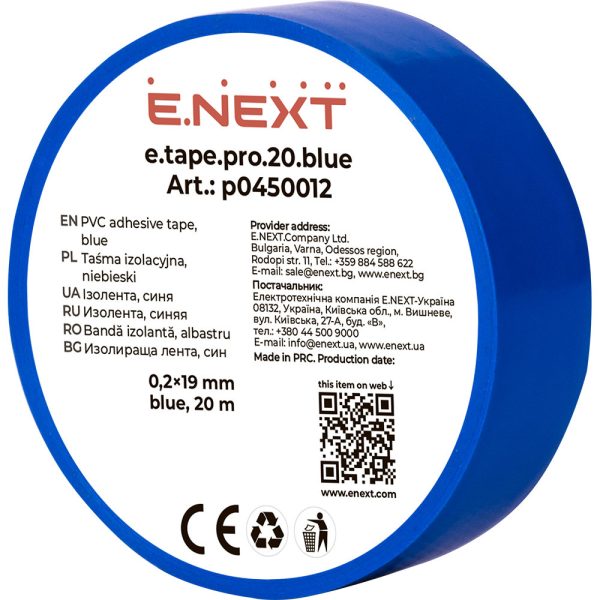 Ізострічка ПВХ 0,15х19х20м (синя) самозатухаюча “Е-НЕКСТ”