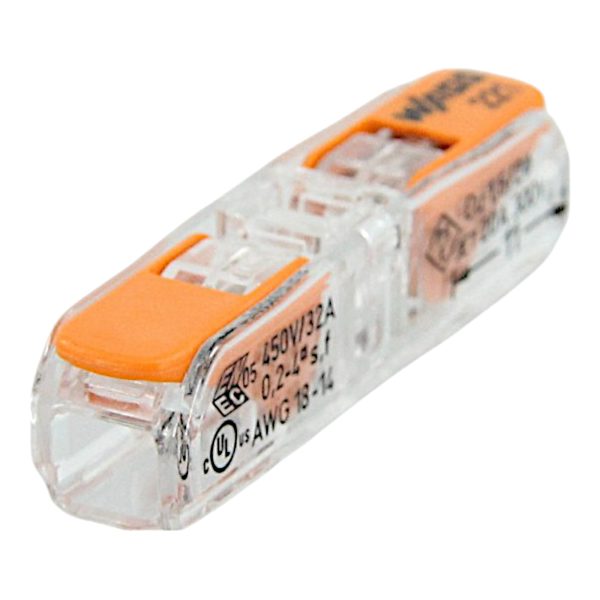 Клема 2-х провідна х 4мм.кв. пряма з нажимним важелем “WAGO” (уп.60шт)