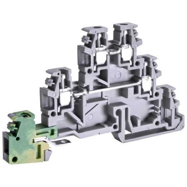 Клема гвинтова дворівнева ESC-TDE.2 (2,5 мм2, з контактом заземлення, сіра)
