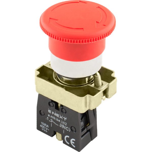 Кнопка “грибок” з фіксацією поворотна e.mb.bs542 червоний, 1NC призначена для керування електричними ланцюгами змінного струму напругою до 400В частотою 50/60Гц та постійного струму до 220В, а також різним технологічним обладнанням