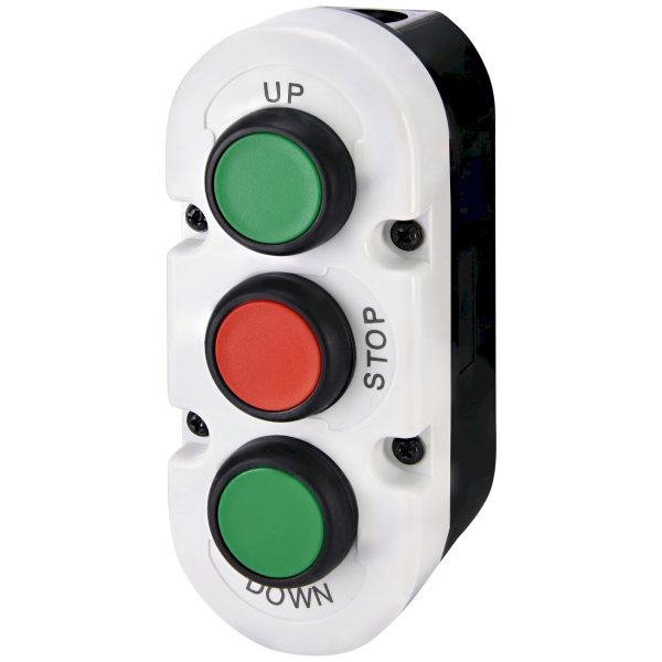 Кнопковий пост 3-модул. ESE3-V7 (“UP/STOP/DOWN”, зелений/червоний/зелений, корп. сіро-чорний)