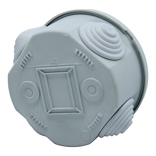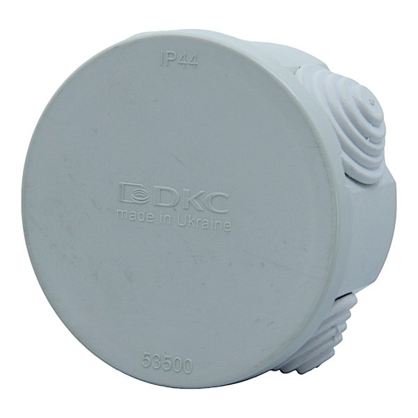 Коробка розподільча 65х35 IP44 зовнішня пласт. кругла з кабель/введ.