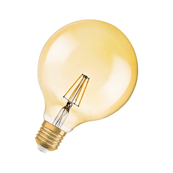 Лампа ЛЕД куля 6,5W 2400K 650lm E27 1906 GLOBE 824 230V FIL Gold DIM (3 роки) OSRAM