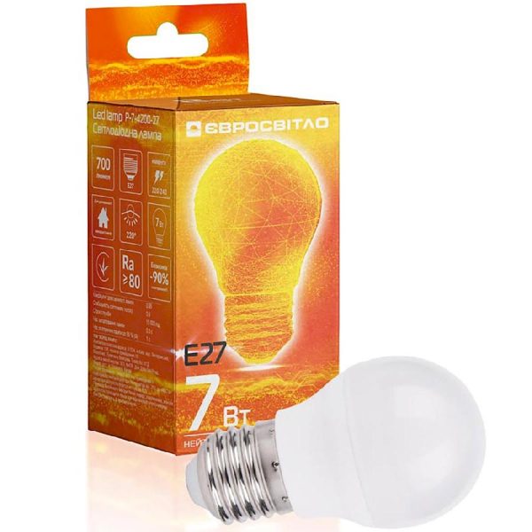 Лампа ЛЕД куля 7W 4200K 700Lm E27 Р-7-4200-27 “Євросвітло”
