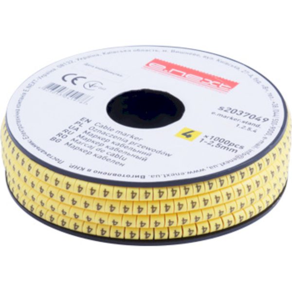 Маркер кабельний e.marker.stand.1.2.5.4, 1-2,5 кв.мм, “4”, 1000 шт