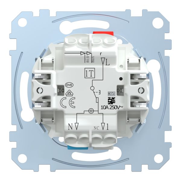 Механізм вимикача 1-клавішного внутрішнього кнопкового з замикальним контактом та клемою для нейтралі “Merten”