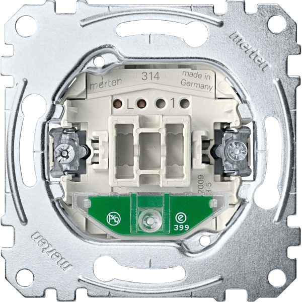 Механізм вимикача 2-клавішного внутрішнього кнопкового з замикальним контактом та окремим контактним сигналізатором із світловим індикатором “Merten”