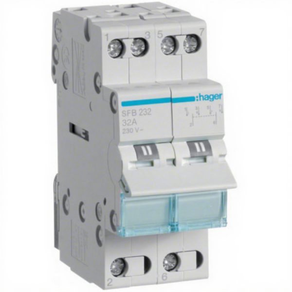 Перемикач I-0-II з загальним виходом знизу, 2-полюсний, 32А/230В (B)