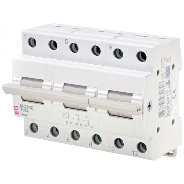 Перемикач I-0-II з загальним виходом зверху 3п 100А/230В SSQ 3100 “1-0-2”