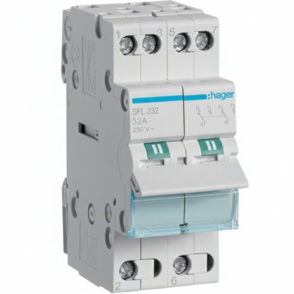 Перемикач I-II з загальним виходом знизу, 2-полюсний, 32А/230В (B)