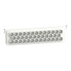 Пластина для введеня кабелю. Призначена для встановлення в щит 18 модулів навісного встановлення. Може бути встановлена у верхній або нижній частині щита. Ступінь захисту IP40. Виготовлена з пластику. Має 26 входів для кабелів. Колір білий (RAL 9003). Стійкість пластику до полумя та надмірної температури 650°C. Загальні розміри: (Ш) 332 мм x (В) 23 мм x (Г) 140 мм. Вага 400 г.