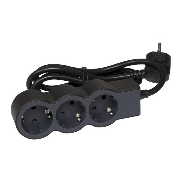 Подовжувач СТАНДАРТ 3х2К+З розетки, 16 А, з кабелем 5 м, колір Чорний
