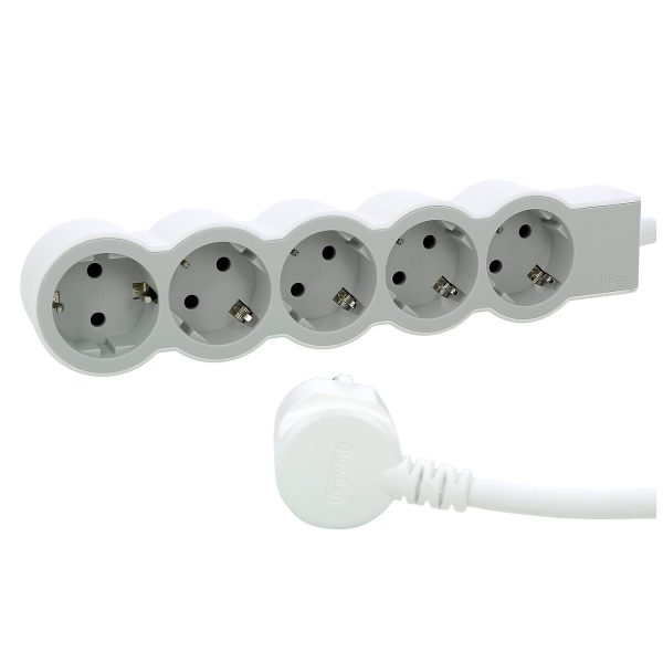 Подовжувач СТАНДАРТ 5х2К+З розеток, 16 А, з кабелем 3 м, колір Білий/Сірий