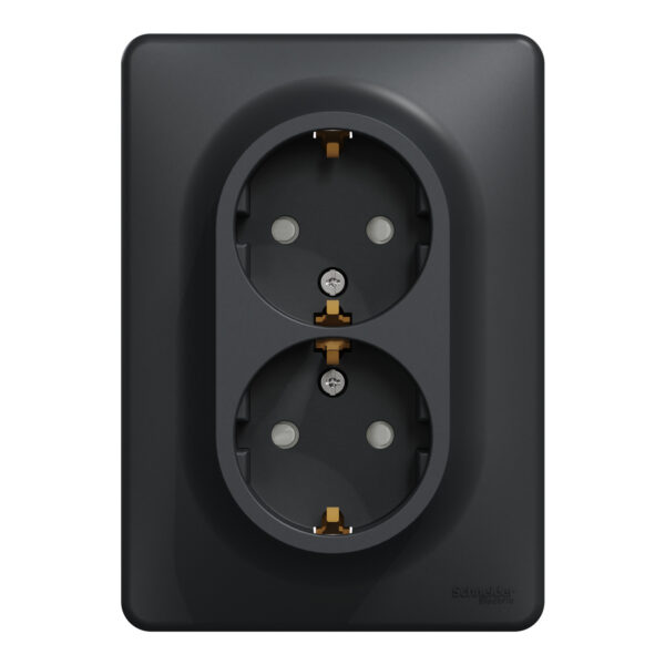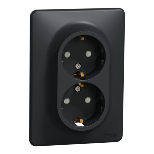 Розетка 2-а з заземлювальним контактом, внутрішня, зі шторками “Sedna Design” Чорний