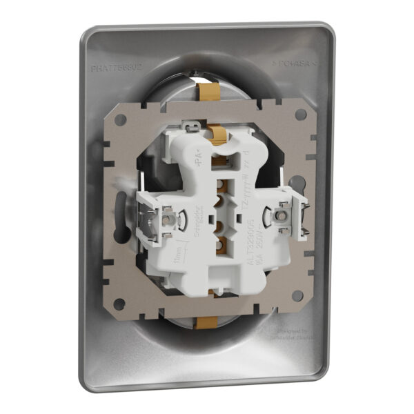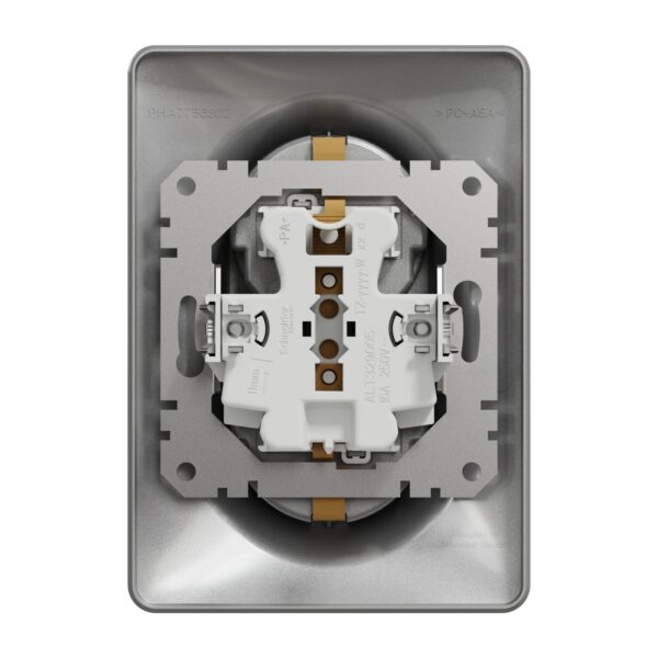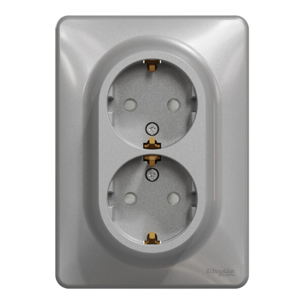 Розетка 2-а з заземлювальним контактом, внутрішня, зі шторками “Sedna Design” Алюміній