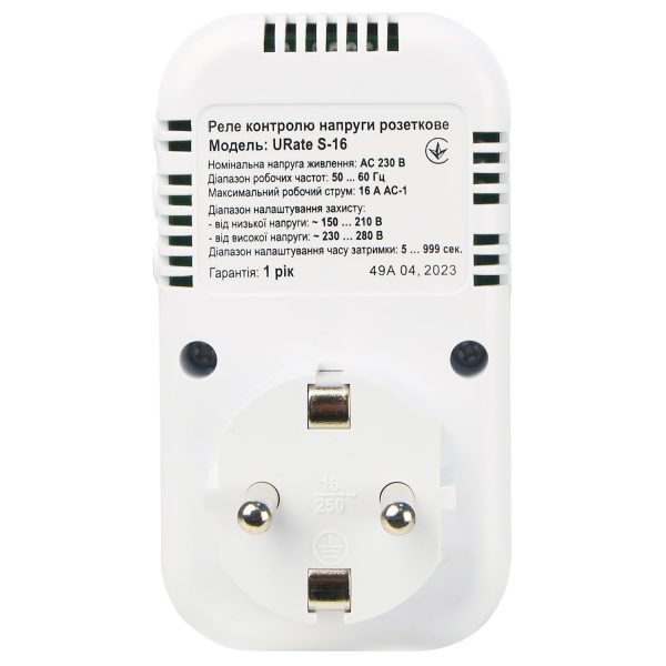 Реле контролю напруги розеткове URate S-16 AC 230V 16A