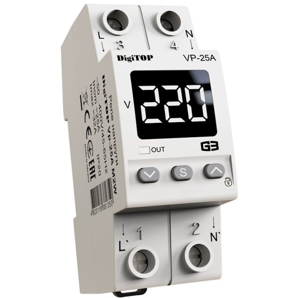 Реле напруги 25А, Vp-25A (уст. на DIN-рейку) DigiTop
